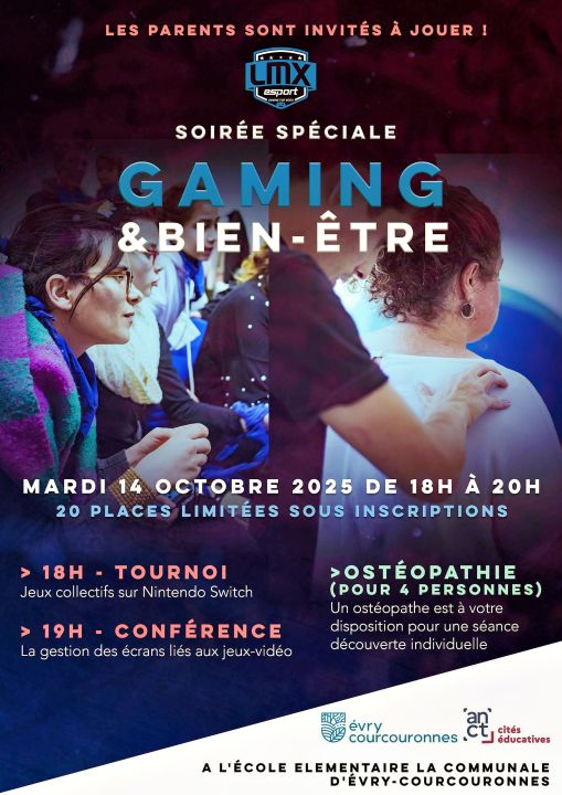 Le mardi 14 octobre, une soirée "gaming et bien-être" est organisée à l'école. Il s'agit d'une sensibilisation sur l'utilisation des écrans pour les enfants et les parents.